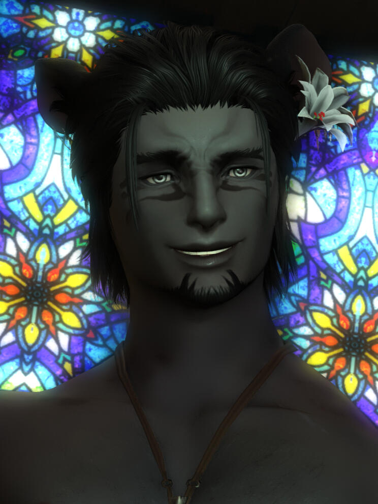 Strange Aether? Something's mangled the fabric of his aether, but it's not too strange. It feels scarred and sometimes 'bleeding' to look at with aethersight. His color is gold. He is mortal, he is miqo'te.