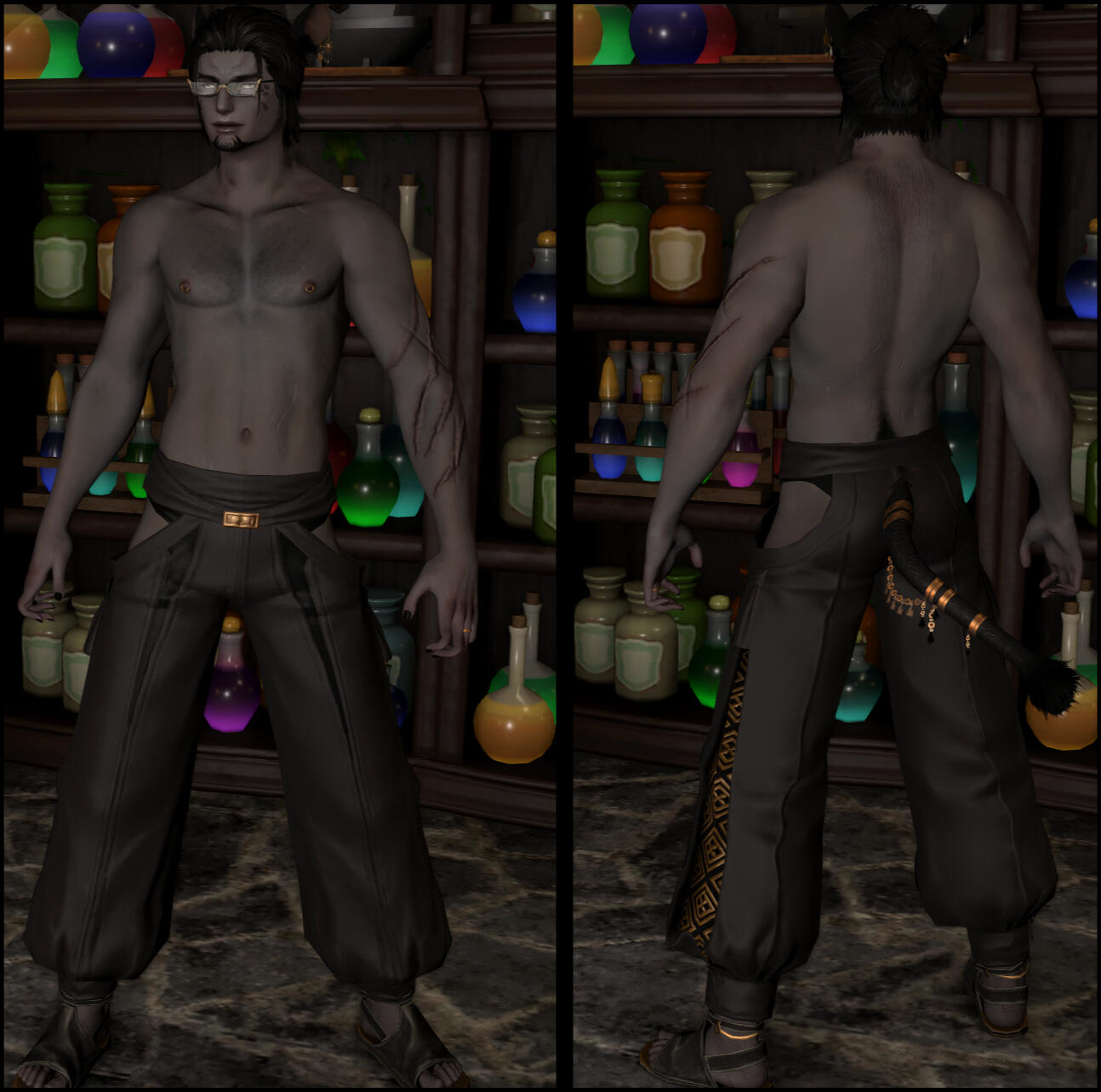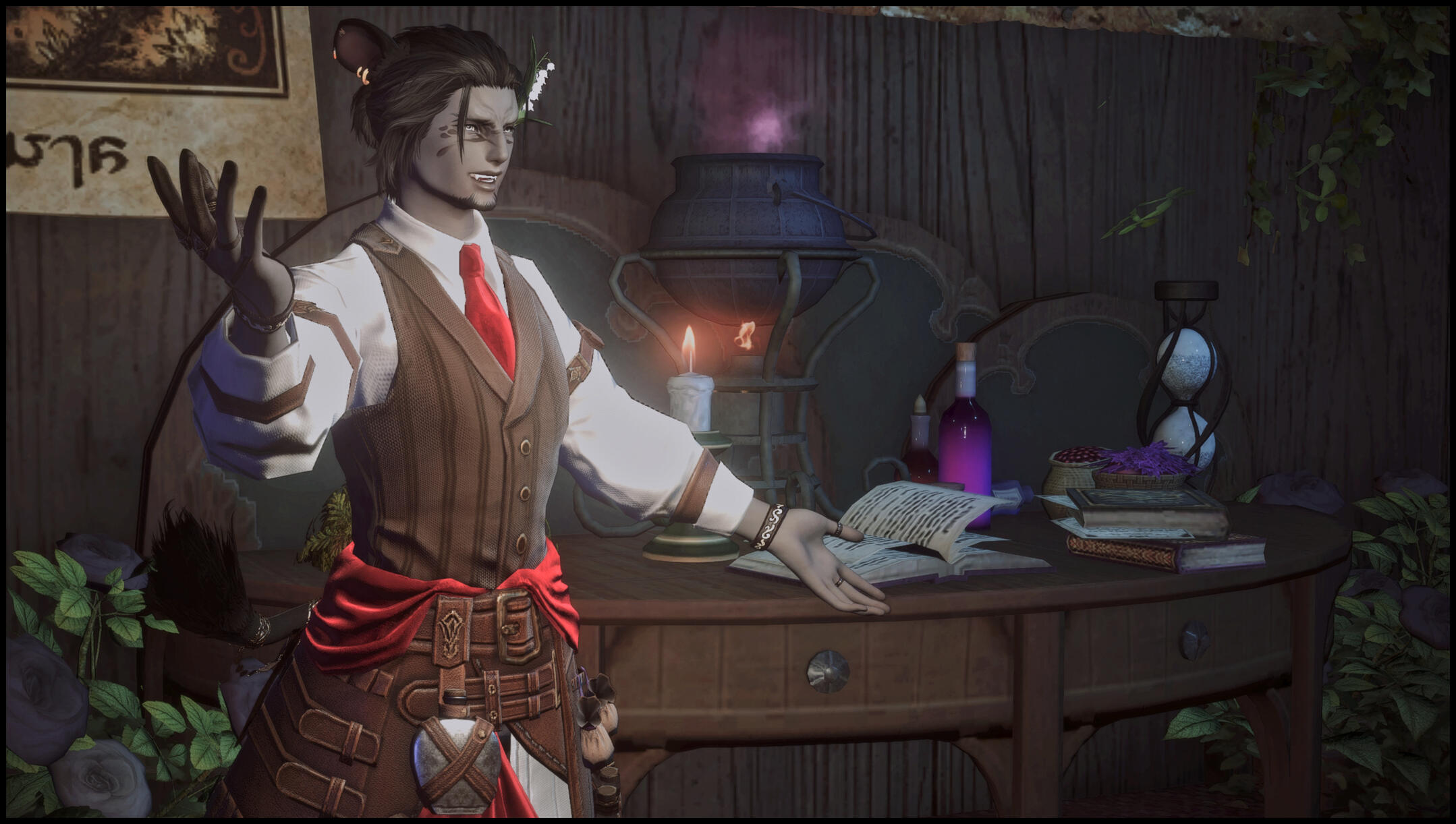 Though publicly Ynali will state he is a thaumaturge, in truth he is more than that. With Amdapor emerged again there was a soul crystal to be found on the remains of the attackers long ago imprisoned there, a thing that promised shortcuts to the powers he felt he desperately needed. It's not necessarily the blessing it sounds, as he will be quick to mention should one find out about it.His name is on old lists of those registered to the thaumaturge' guild in Ul'dah, but long forgotten- he didn't stay long for reasons unspoken, and does not take part these days. Occasionally he does business with the alchemist' guild but otherwise stays apart. He's not really one to be tied down by rules and authority.